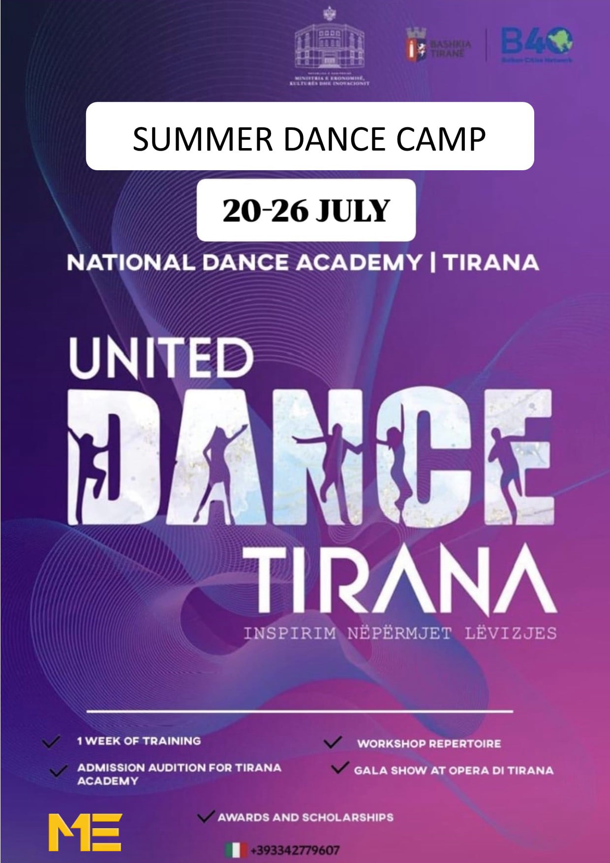 UNITED DANCE TIRANA è una full immersion di grande danza della durata di sei giorni, ospitata nella prestigiosa Accademia Nazionale di Tirana. Un’esperienza unica e altamente formativa, pensata per offrire ai partecipanti, tutti giovani talenti scelti con cura in tutta Europa, l’opportunità di entrare in contatto diretto con la metodologia di insegnamento dei Paesi dell’Est, riconosciuta a livello internazionale per rigore, qualità e profondità artistica.